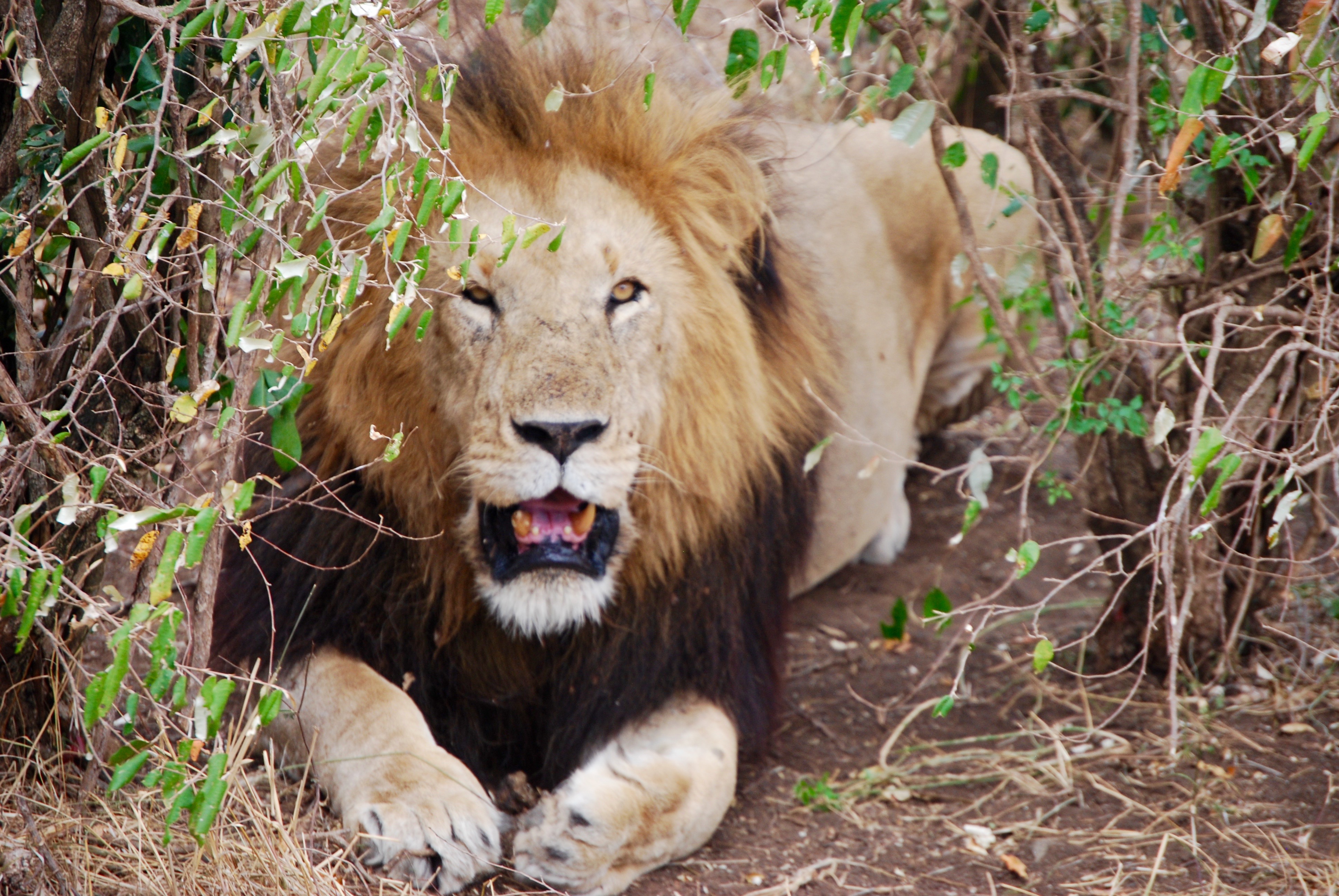 We came across this male lion panting in the heat under a tree in the Serengeti.